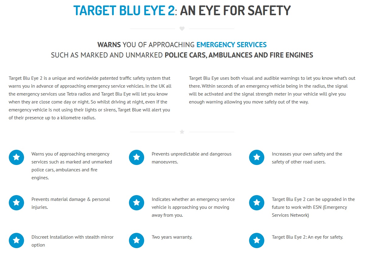 Like all Blu Eye systems, the LCD version continuously detects radio activity on the Airwave (TETRA) network. This allows it to alert you to the presence of nearby emergency services including police, ambulance, fire engines, and unmarked police cars, even when they are driving at high speed without lights or sirens.